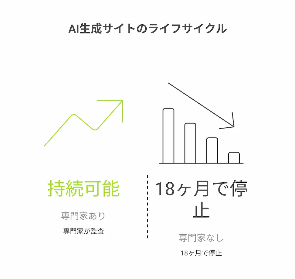 | 「作り直し」コスト | 修正より作り直した方が早い——最初から制作会社に頼んでいた方が安上がりだったケースが多数 |